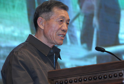 1月13日下午3時,沈浩同志先進事跡報告會在人民大會堂舉行,圖為安徽鳳陽縣小崗村村民、“大包干”帶頭人之一嚴金昌作報告。新華網 李清 攝