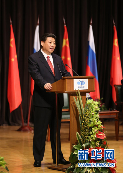 正在俄羅斯進行國事訪問的國家主席習近平23日在莫斯科國際關系學院發表題為《順應時代前進潮流 促進世界和平發展》的重要演講。習近平在演講中深入闡述中國對當前世界形勢的看法和對國際關系的立場主張,呼吁各國共同推動建立以合作共贏為核心的新型國際關系,強調中國堅定不移走和平發展道路,堅定不移發展中俄全面戰略協作伙伴關系。