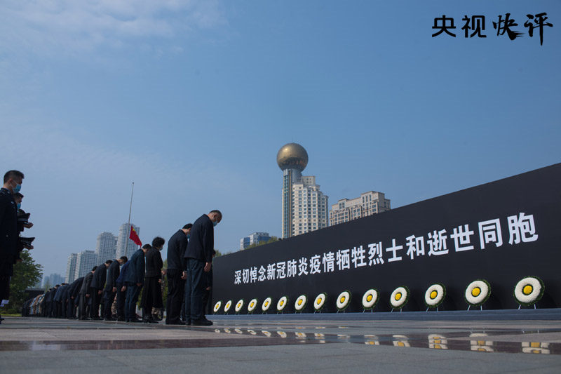 清明寄哀思。今天上午10時,習近平、李克強、栗戰書、汪洋、王滬寧、趙樂際、韓正、王岐山等黨和國家領導人來到中南海懷仁堂前,向新冠肺炎疫情犧牲烈士和逝世同胞默哀3分鐘。全國各地汽車、火車、艦船鳴笛,防空警報鳴響,舉國哀悼。