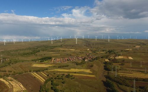 這是河北省張家口市張北縣大河鄉(xiāng)一處風(fēng)電場(chǎng)(9月15日攝,無(wú)人機(jī)照片)。新華社記者 楊世堯 攝