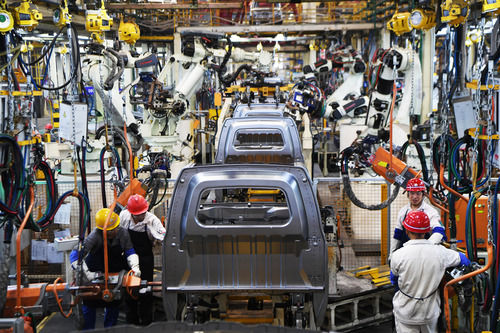 工作人員在位于重慶萬(wàn)州的長(zhǎng)安跨越智能化生產(chǎn)車(chē)間內(nèi)作業(yè)(9月23日攝)。新華社記者 王全超 攝