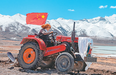 4月30日,村民開著拖拉機參加西藏那曲市尼瑪縣的春耕典禮。