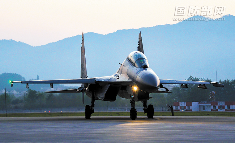 圖為東部戰(zhàn)區(qū)空軍航空兵某旅組織跨晝夜飛行訓(xùn)練。(圖片來源:國防部網(wǎng))