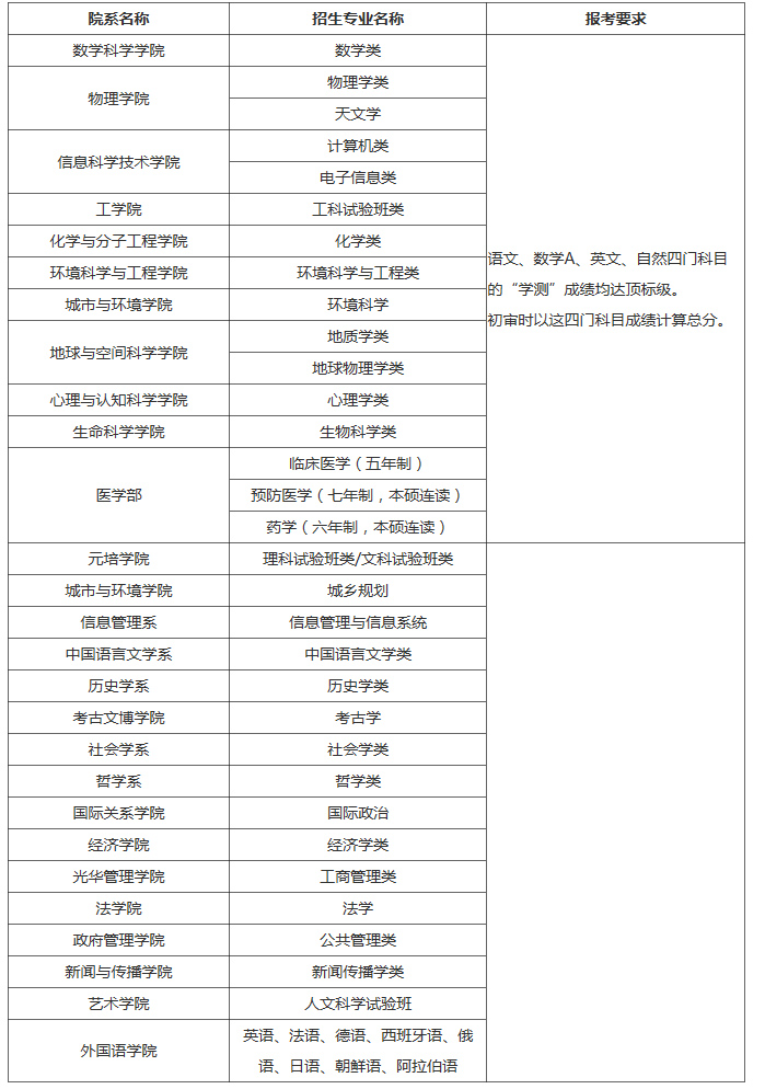 2、凡所報專業志愿中包含數學類、物理學類、天文學、計算機類、電子信息類、工科試驗班類、化學類、環境科學與工程類、環境科學、地質學類、地球物理學類、心理學類、生物科學類、臨床醫學、預防醫學或藥學之一的考生,初審時以語文、數學A、英文、自然四門科目成績計算總分。