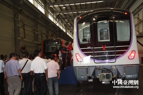 中國和平統一促進會赴湘考察團走進南車株洲電力機車有限公司的生產車間。圖為南車株洲電力機車有限公司生產的地鐵。(中國臺灣網 王君飛 攝)