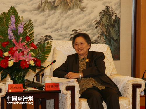 何魯麗指出,大陸和臺灣同屬一個中國,中國是兩岸同胞的共同家園,13億大陸同胞和2300萬臺灣同胞都是血脈相連的命運共同體。20多年來,兩岸人員往來和經濟文化交流已經達到相當的規模和水平,兩岸同胞的共同利益日益增大,兩岸經濟優勢互補、共同發展的前景進一步顯現。在今年3月召開的全國政協十一屆一次會議上,胡錦濤總書記再次就兩岸關系問題發表重要講話,這既是對我們一貫對臺方針、政策的重申與強調,又是對新形勢下發展兩岸關系的新宣示、新闡述,充分表明了祖國大陸為兩岸同胞謀福祉,為臺海地區謀和平的善意和誠意。
