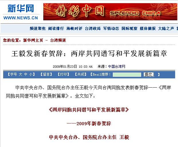 在新的一年里,中共中央臺(tái)辦、國(guó)務(wù)院臺(tái)辦將堅(jiān)定不移地堅(jiān)持中央對(duì)臺(tái)大政方針,全面貫徹落實(shí)胡錦濤總書(shū)記重要講話精神,牢牢把握兩岸關(guān)系和平發(fā)展的主題,不斷開(kāi)創(chuàng)兩岸關(guān)系和平發(fā)展的新局面。