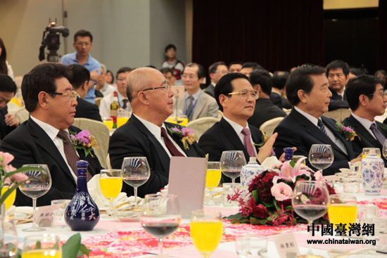 河北省委常委劉永瑞(左一)、中國國民黨榮譽主席吳伯雄(左二)、河北省副書記付志方(左三)、世貿中心董事長王志剛(左四)出席開幕式酒會(攝影 中國臺灣網 陳寧)