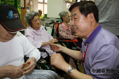 北京市臺辦副主任高振聲與老人們親切交談。