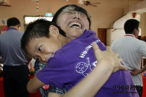 一位小朋友緊緊的抱住北京臺辦金秀清秘書長。