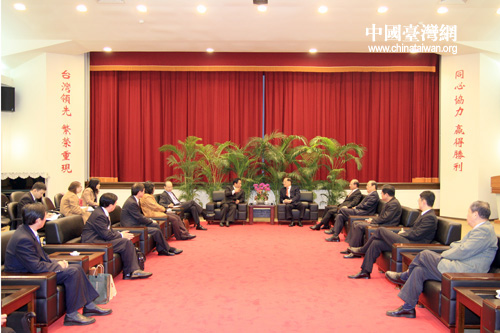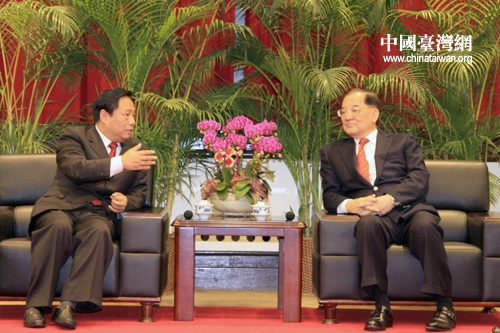 中國臺灣網2月1日臺北消息 中華全國臺灣同胞聯誼會會長梁國揚一行,1日在臺北拜會了中國國民黨榮譽主席連戰。梁國揚向連戰介紹了全國臺聯的有關情況以及在臺北舉行的“2010中國國粹油畫藝術精品展”。連戰表示,全國臺聯梁國揚會長一行,不但是跟臺灣有歷史淵源,還有血緣、人緣、地緣。兩岸也本來就是同根同源,都是中華民族一分子,不能忘本。希望全國臺聯諸位能常回臺灣走一走,看一看。 (中國臺灣網 田云鵬 攝)