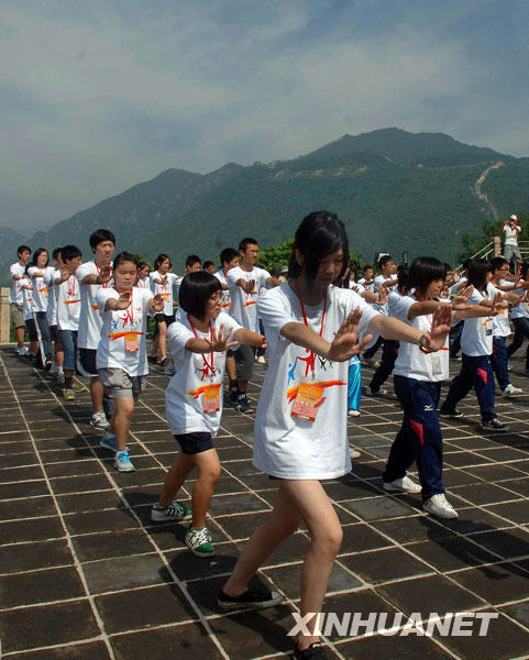 7月15日,參加“兩岸青年舞太極聚長城”活動的學(xué)生在長城上學(xué)練太極。新華社發(fā)(卜向東 攝) |
