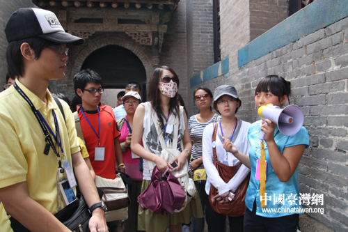 臺(tái)灣青年團(tuán)第一小組正在認(rèn)真聽導(dǎo)游講解喬家大院的發(fā)家史(中國臺(tái)灣網(wǎng) 陳寧 攝)
