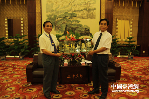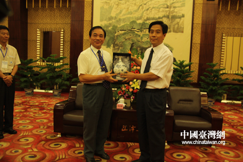 臺灣青年團向山西省委常委、秘書長高建民贈送臺灣瓷器(中國臺灣網(wǎng) 陳寧 攝) |