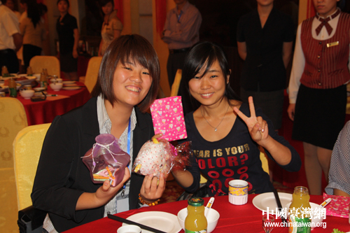 兩地學生交換禮物,好開心(中國臺灣網 陳寧 攝) |
