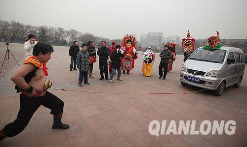 其中,天橋著名的“爬桿兒于”的后代于健表演的單耳拉汽車,在一只耳朵上栓上繩子,能拉動一輛面包車,堪稱京城獨一份兒。而卞輝表演的羅圈獻彩,空手拿著兩個騰編的籠屜,卻能為您“獻”出一桌的酒席。此外,京城快板名家李春華的徒弟、快板小神童安子元還將表演花唱繞口令,這個“我要上春晚”節目的“人氣王”雖然才15歲,卻將快板打得出神入化。