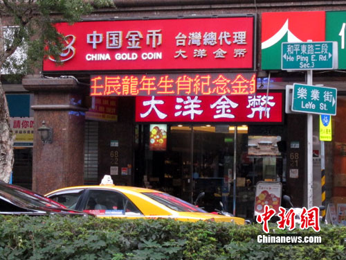 圖為中國金幣總公司在臺灣的總經銷,位于臺北市和平東路三段68號的臺灣大洋金幣公司正在推介中國人民銀行發行的壬辰龍年生肖金銀紀念幣。