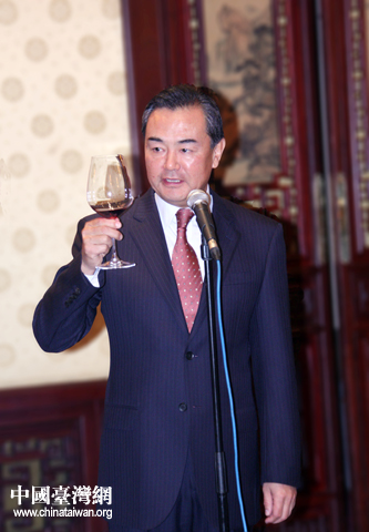 王毅在致辭時表示,胡錦濤總書記在紀念辛亥革命一百周年大會上的重要講話,全面闡述了辛亥革命的歷史地位和重大意義。胡總書記還專門就兩岸關系發表了重要意見,強調攜手推進兩岸關系和平發展,同心實現中華民族偉大復興,應是兩岸同胞共同追求的目標。