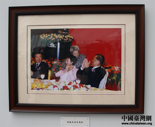 楊永山最滿(mǎn)意的作品《連戰(zhàn)夫婦與吳儀》(中國(guó)臺(tái)灣網(wǎng) 張蕾 攝)