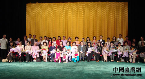 臺灣中華婦聯(lián)總會訪問團一行在觀看完演出后與小演員們親切交談
