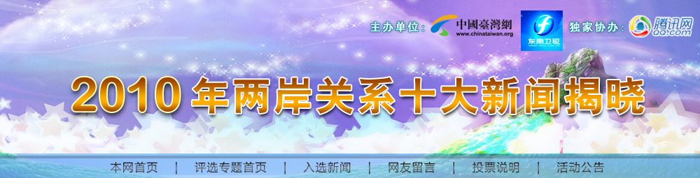 | 我網(wǎng)自2005年推出“兩岸關(guān)系十大新聞評選”,至今已經(jīng)連續(xù)舉辦過5屆。每一年我們都同專家學(xué)者與廣大關(guān)注兩岸關(guān)系發(fā)展的網(wǎng)友一道,評選出當(dāng)年最具影響力的兩岸關(guān)系十大新聞事件。同時,也以此為線索回顧與梳理... |