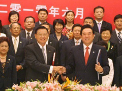 | 6月29日,海峽兩岸關(guān)系協(xié)會和臺灣海峽交流基金會第五次領(lǐng)導(dǎo)人會談在重慶舉行,雙方簽署了《海峽兩岸經(jīng)濟合作框架協(xié)議》(簡稱ECFA),標(biāo)志著兩岸經(jīng)濟關(guān)系進入新階段。7月12日,中共中央總書記胡錦濤在會見中國國民黨榮譽主席吳伯雄時指出,這是一份為民謀利、互利雙贏、影響深遠的好協(xié)議,符合兩岸同胞共同利益,符合中華民族整體利益。9月12日,協(xié)議正式生效。 |