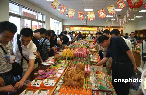 臺灣的鳳梨酥、麻薯等點心食品遐邇聞名,許多初到寶島的大陸客熱衷于選購這些土特產,作為饋贈親朋好友的禮物。圖為9月24日一個大陸出版界參訪團在花蓮的商店中選購麻薯。 中新社發 林國瑞 攝