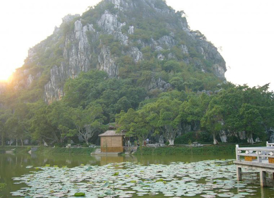 七星巖景區(qū)由五湖、六崗、七巖、八洞組成,面積8.23平方公里,湖中有山,山中有洞,洞中有河,景在城中不見城,美如人間仙景。“借得西湖水一圜,更移陽朔七堆山,堤邊添上絲絲柳,畫幅長留天地間。”葉劍英元帥的《游七星巖》詩勾勒出七星巖的秀麗景色。七星巖以喀斯特溶巖地貌的巖峰、湖泊景觀為主要特色,七座排列如北斗七星的石灰?guī)r巖峰巧布在面積達6.3平方公里的湖面上,20余公里長的湖堤把湖面分割成五大湖,風光旖旎。被譽為“人間仙境”、“嶺南第一奇觀”。國家級文物保護單位七星巖摩崖石刻是南中國保存得最多最集中的摩崖石刻群,李邕、李紳、包拯、周敦頤、俞大猷、陳恭尹、朱德、葉劍英等500余壁唐、宋、元、明、清及當代的名人詩題為七星巖增輝添色。
