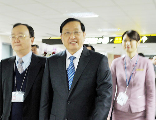 遼寧省省長陳政高率領代表團于2月15日23時抵達臺北桃園機場。東北新聞網(wǎng) 馬哲 攝