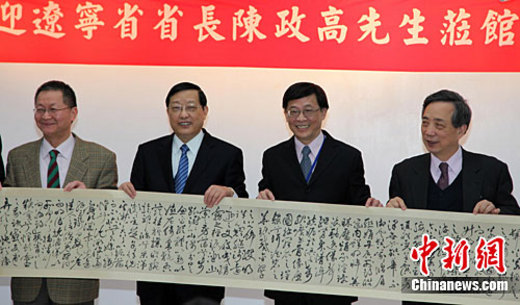 陳政高指出,遼寧的經濟總量目前位居中國大陸各省市第7名,希望在臺的遼寧鄉親們能經常回去看看,不要忘了遼寧,而且也能介紹臺灣企業到遼寧投資,或是介紹遼寧企業來臺投資,為臺灣與遼寧搭好橋梁。