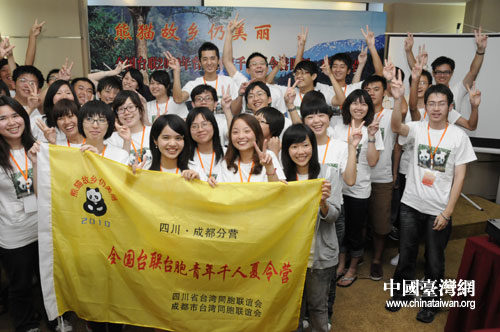 中國臺灣網(wǎng)7月12日成都消息 7月11日下午,全國臺聯(lián)2010年臺胞青年千人夏令營四川·成都分營——“熊貓故鄉(xiāng)仍美麗”活動在成都隆重開營。來自海峽兩岸的臺灣大學(xué)、政治大學(xué)、世新大學(xué)、東吳大學(xué)、四川大學(xué)、上海海事大學(xué)等25所高校的近50名大學(xué)生參加了開營式。四川省臺辦機(jī)關(guān)黨委書記楊永培、省臺聯(lián)會長劉琪出席開營儀式,省臺聯(lián)副會長陳開明主持開營儀式。