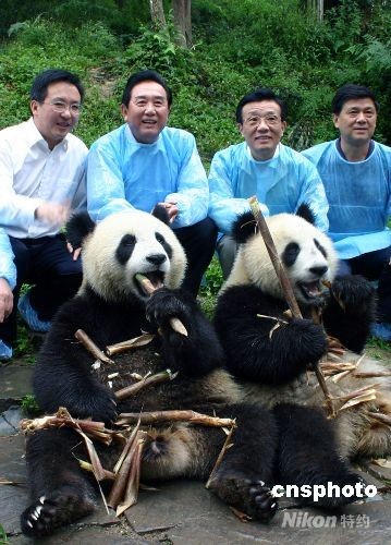 海峽兩岸關系協會會長陳云林一行今天來到四川省雅安市,探望汶川大地震后轉移到中國保護大熊貓研究中心碧峰峽基地的贈臺大熊貓“團團”和“圓圓”,并考察了當地中小學的災后重建情況。