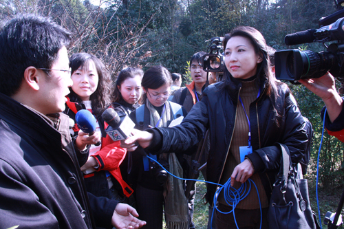兩岸媒體采訪四川臥龍自然保護區(qū)管理局副局長李德生(鐘寶華 攝)