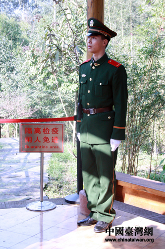 武警哥哥為“團團”“圓圓”入臺前站好最后一班崗(鐘寶華 攝)