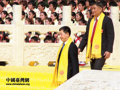 9點55分,大典在中華全國臺灣同胞聯誼會會長梁國揚的主持下正式開始。包括國臺辦副主任葉克冬在內的各級領導人和嘉賓先后敬獻花籃,鞠躬致敬。親民黨副主席張昭雄等嘉賓陸續凈手上香。十屆全國人大常委會副委員長、中華炎黃文化研究會會長許嘉璐恭讀《拜祖文》。