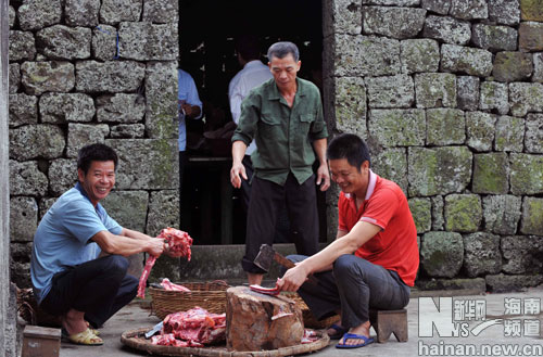 海南省海口市石山鎮美社文明生態村中一戶人家正在準備結婚喜宴(1月6日攝)。