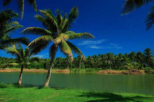 東郊椰林:位于文昌市東郊鎮,與著名的清瀾港相鄰,這里是椰樹的王國,身處其中時,不管把視線投到哪里,都能看到高矮不等、斜直各異、婆娑多姿的樹林。這里有50多萬株椰樹,有紅椰、青椰、良種矮椰、高椰、水椰等。椰子水被當地人稱為天水,清甜甘美。