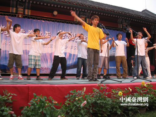 臺灣金甌女中董事汪大華先生表示,一個星期以來,來自臺灣的青年、少年、老年人真的有了回家的感覺。來到北京,體驗了我們中華文化,體驗了我們民族感情。臺灣來的青少年朋友,對于祖國文化的認知、對于歷史人物的了解只能從課本上學來,今天終于有幸做一個親身的印證,這種感受非常難得。另外,這一星期來,兩地青年朋友的交流,不僅是從體育、文化方面,更重要的是感情的交流、思想的交流,這種交流對于臺灣青少年有非常重要的意義,對于促進未來中華民族的的發展起到積極性作用。今天是個良好的開始,我們也希望將來有更多的青少年,像今天我們在座的青少年一樣,來交流,我們也希望這邊的青少年朋友,有機會到臺灣交流,讓我們手攜手、心連心,共同開創中華民族的美好前程!