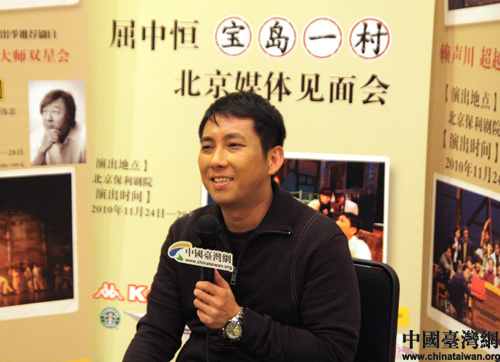 中國(guó)臺(tái)灣網(wǎng)10月27日北京消息 講述臺(tái)灣眷村故事的舞臺(tái)劇《寶島一村》將于11月24—28日在北京再度上演,昨天,該劇主要演員之一、臺(tái)灣知名藝人屈中恒來(lái)京,為該劇提前預(yù)熱。26日晚,本網(wǎng)記者在保利劇院對(duì)屈中恒進(jìn)行了專訪。