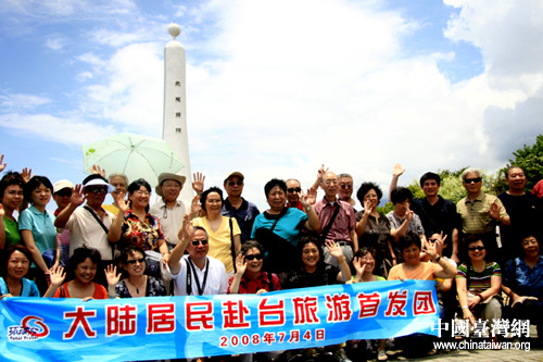 大陸旅游首發團北京分團部分團員來到位于臺灣東海岸的北回歸線地標建筑前(李徽 攝)