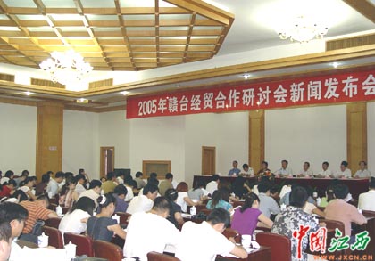 2005年贛臺(tái)經(jīng)貿(mào)合作研討會(huì)新聞發(fā)布會(huì)現(xiàn)場(chǎng)。 中國(guó)江西網(wǎng)記者 楊冗晟 攝
