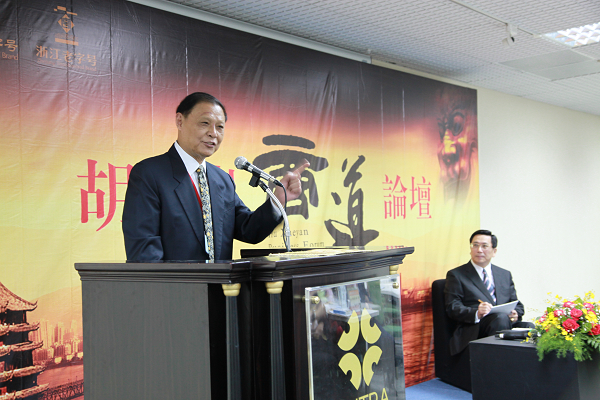 經貿實踐雜志社臺北專電 4 月23日下午,臺北市世界貿易中心舉辦了“中華老字號臺北精品展——胡雪巖商道論壇”。由胡慶余堂掌門人、浙江省老字號協會會長馮根生主講、臺北大學公共行政暨政策學系教授鄭又平主持的論壇,吸引了200多位來自兩岸的媒體、企業人士和臺北多所大學的師生與會。