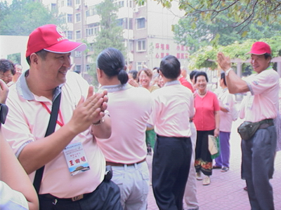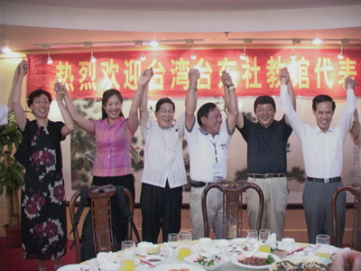 能歌善舞似乎是所有少數(shù)民族的共性,臺(tái)東花蓮地區(qū)被臺(tái)灣民眾稱為"島內(nèi)最后一片凈土",是少數(shù)民族的聚居區(qū)。這次訪問團(tuán)中也有幾位少數(shù)民族同胞,成為全團(tuán)活躍氣氛的代表人物。王田明是萬(wàn)榮社教站召集人,他所屬的民族排在島內(nèi)少數(shù)民族的第十二位,居住在太魯閣旁,全族人口只有兩千余人,他也是我最先認(rèn)識(shí)的幾位團(tuán)員之一。因?yàn)樵搱F(tuán)訪津主要是進(jìn)行津臺(tái)兩地的社會(huì)教育交流,每個(gè)參訪地點(diǎn)都是與社區(qū)群眾直接溝通交流,一路走來,王召集人總會(huì)給被參訪單位留下深刻的印象,不僅是因?yàn)樗芨枭莆瑁匾氖撬乃市愿瘛T谖顼垥r(shí),組織全體團(tuán)員帶動(dòng)被訪社區(qū)的負(fù)責(zé)人,跳起早就排練好的少數(shù)民族舞蹈,每當(dāng)熱舞后,王召集人總會(huì)幽默的說,"沒有舞蹈,宴會(huì)怎么能結(jié)束"。