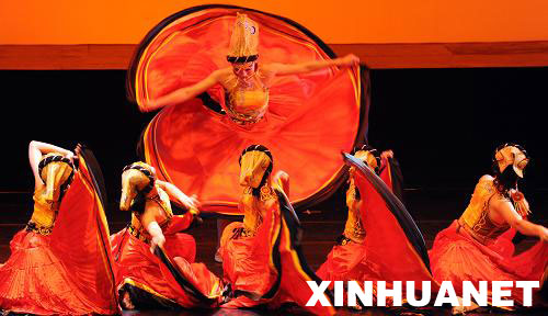 9月25日,大陸演員在臺北表演彝族舞蹈《席勒紅裙》。