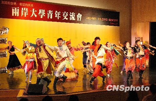 9月22日晚,大陸少數(shù)民族藝術(shù)團(tuán)在臺(tái)北的第一場(chǎng)賑災(zāi)演出圓滿結(jié)束。以北京中央民族大學(xué)、西南民族大學(xué)的87名少數(shù)民族大學(xué)生為主體的歌舞交流團(tuán)體,將在臺(tái)北舉行兩場(chǎng)“民族風(fēng)兩岸情 災(zāi)后重建關(guān)懷”義演,為了支持臺(tái)灣災(zāi)區(qū)重建,此次義演的票房收入扣除基礎(chǔ)成本后將全數(shù)捐獻(xiàn)給臺(tái)灣災(zāi)區(qū)。 中新社發(fā) 楊博 攝