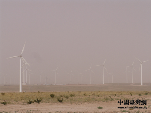 原野中高高聳立的風(fēng)力發(fā)電機(jī)