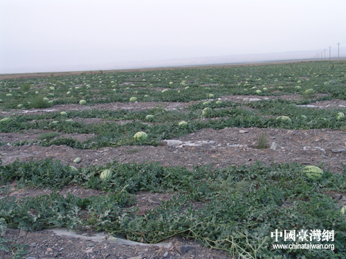 7月10日,在寧夏參加“海峽兩岸記者聯合采訪活動”的兩岸記者一行參觀采訪中衛市壓砂瓜基地。