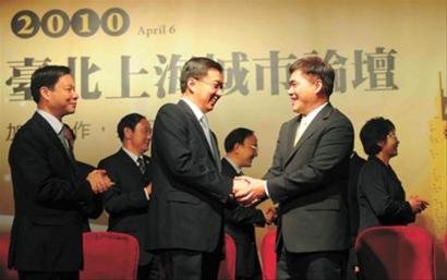 這次飛躍海峽兩岸近700公里的訪問,源于2年前的“上海之約”。2008年6月,臺北市市長郝龍斌率團到上海,并積極邀請上海市市長韓正赴臺訪問。在2010年世博會開幕前夕,兩岸期盼已久的上海市政府訪問團終于成行,抵臺訪問。