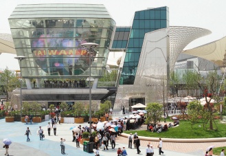 天燈造型的臺(tái)灣館夜間展演為世博園區(qū)一大特點(diǎn),許多參觀者從大老遠(yuǎn)就可看見(jiàn)臺(tái)灣館,也有不少入園觀眾駐足高架步道與世博軸上欣賞臺(tái)灣館的外部展演。