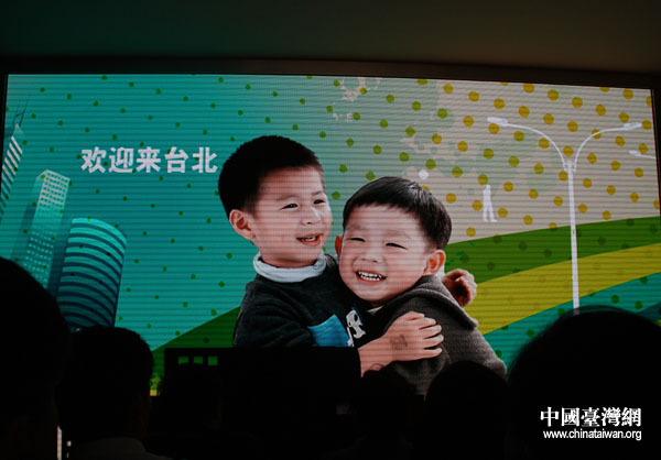 走進臺北案例館,第一眼映入觀眾眼簾的,就是一個頗有人情味的宣傳短片,“歡迎來臺北”。(中國臺灣網 張弛 攝)
